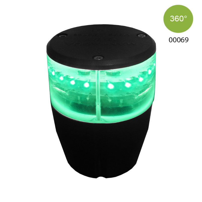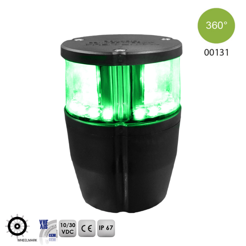 Kompaktowa i lekka lampa nawigacyjna burtowa prawa zielona LED z obudową z żywicy epoksydowej odporną na wstrząsy. Dla jednostek o długości do 12 m (39 ft).