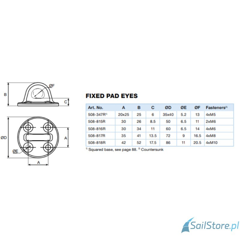 Uchwyt bloczka o średnicy 50 mm do bloków Selden z serii PBB 50 i BBB 60. Bezpieczne obciążenie robocze: 1000 kg. Wykonany ze stali nierdzewnej.