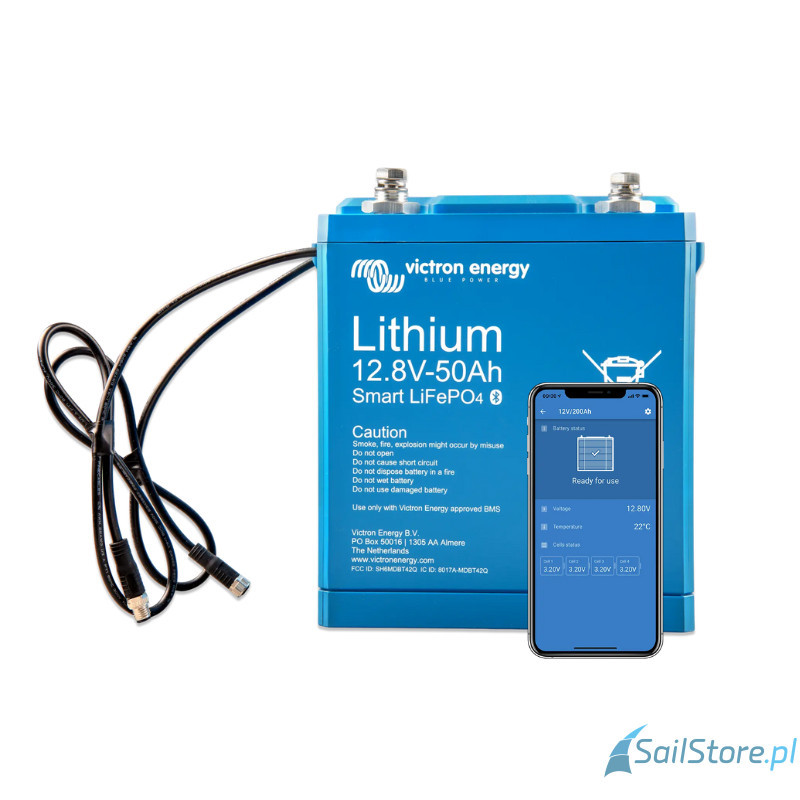 Akumulator Victron Energy w technologii LiFePO4 o napięciu 12V i pojemności 50Ah.