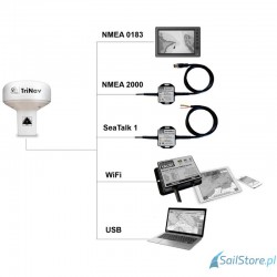 GPS160 jest to nowy, wysokowydajny czujnik pozycjonowania wykorzystujący GPS, Glonass i nowe systemy satelitarne Galileo. Dlatego zapewnia wyjątkową dokładność pozycji i nadmiarowość. Typowa dokładność jest lepsza niż 1 m. Po ustawieniu dane mogą być również wysyłane z częstotliwością do 18 Hz, co zapewnia płynniejsze wyświetlanie ścieżek plotera. Technologia oprogramowania TriNav ™ poprawia również niedokładność pozycjonowania, która może wystąpić w wyniku podszywania się i lokalnych zakłóceń. Model USB jest wyposażony w antenę GPS z kablem USB.