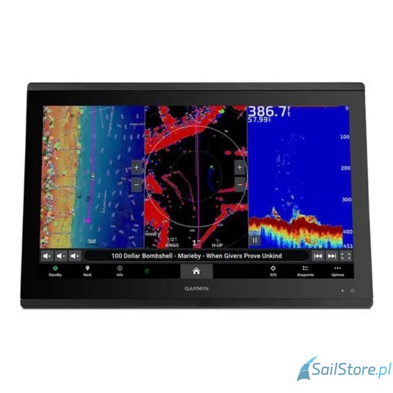 Wielkoformatowy wyświetlacz wielofunkcyjny GPSMAP 8422 jest wyposażony w ekran dotykowy o przekątnej 22 cali i rozdzielczości Full HD. Wyświetlacz z warstwą antyrefleksyjną jest bardzo czytelny nawet w pełnym słońcu oraz jest wyposażony w funkcję automatycznego przyciemnianie wyświetlacza, która pozwala korzystać z wyświetlacza w warunkach słabego oświetlenia i w nocy. Nowy, całkowicie szklany wygląd zapewnia bezpośredni dostęp do eleganckiego i wydajnego panelu sterowniczego podłączonego do sieci. Wyświetlacz LCD IPS — pierwszy w branży w tej klasie — zapewnia jednolite i dokładne odwzorowanie kolorów pod każdym kątem. Wyposażony jest również w wyjście USB umożliwiające korzystanie z wyświetlacza jako ekranu dotykowego przez urządzenia z systemami operacyjnymi Windows® i Mac®. Zainstaluj wiele wyświetlaczy, korzystając z niskoprofilowego uchwytu do montażu wpuszczanego lub na płasko, aby uzyskać elegancki szklany panel sterowniczy. Szybki dostęp do potrzebnych informacji za pomocą jednego dotknięcia ułatwia pływanie łodzią.
