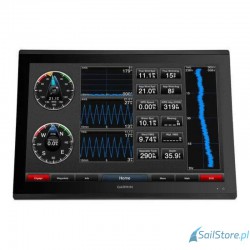Wielkoformatowy wyświetlacz wielofunkcyjny GPSMAP 8424 jest wyposażony w ekran dotykowy o przekątnej 24 cali i rozdzielczości Full HD. Wyświetlacz z warstwą antyrefleksyjną jest bardzo czytelny nawet w pełnym słońcu oraz jest wyposażony w funkcję automatycznego przyciemnianie wyświetlacza, która pozwala korzystać z wyświetlacza w warunkach słabego oświetlenia i w nocy. Nowy, całkowicie szklany wygląd zapewnia bezpośredni dostęp do eleganckiego i wydajnego panelu sterowniczego podłączonego do sieci. Wyświetlacz LCD IPS — pierwszy w branży w tej klasie — zapewnia jednolite i dokładne odwzorowanie kolorów pod każdym kątem. Wyposażony jest również w wyjście USB umożliwiające korzystanie z wyświetlacza jako ekranu dotykowego przez urządzenia z systemami operacyjnymi Windows® i Mac®. Zainstaluj wiele wyświetlaczy, korzystając z niskoprofilowego uchwytu do montażu wpuszczanego lub na płasko, aby uzyskać elegancki szklany panel sterowniczy. Szybki dostęp do potrzebnych informacji za pomocą jednego dotknięcia ułatwia pływanie łodzią.