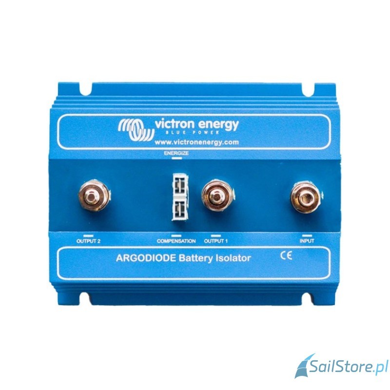 Diodowy izolator baterii Victron Energy umożliwia równoczesne ładowanie dwóch lub więcej baterii z jednego alternatora, przy czym nie wymusza ich połączenia ze sobą. Dzięki użyciu diod Schottk'iego wyróżnia go mały spadek napięcia (przy niskim prądzie spadek wynosi około 0,3 V a na wyjściu około 0,45 V). Wszystkie modele wyposażone są w diodę kompensacyjną, która może zostać użyta w celu nieznacznego zwiększenia napięcia na wyjściu alternatora, kompensując spadek napięcia pomiędzy diodami w izolatorze.