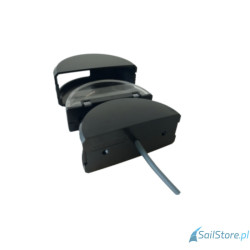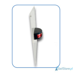 Czerwona lampa nawigacyjna bakburty (lewej strony) w obudowie z białego tworzywa. Przeznaczona do montażu na powierzchni pionowej.