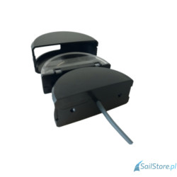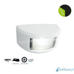Zielona lampa nawigacyjna sterburty (prawej strony) w obudowie z białego tworzywa. Przeznaczona do montażu na powierzchni pionowej.