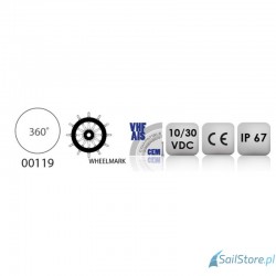 Nawigacyjna lampa kotwiczna emituje białe światło pod kątem 360°. Intensywność oświetlenia >5,4cd z diod LED jest widoczna z odległości minimum 2 mil morskich.