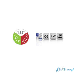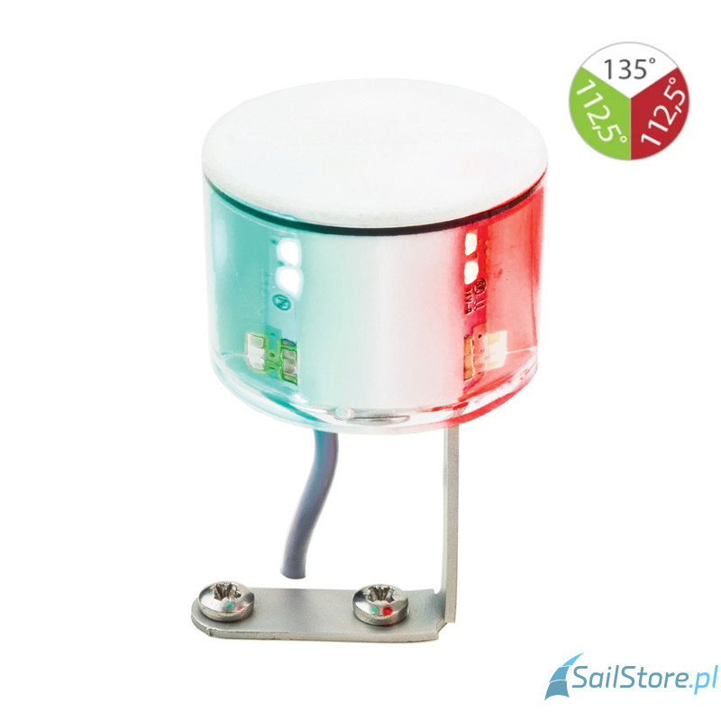 Trójkolorowe światło stałe nawigacyjne z lampą kotwiczną. Emituje światło lewą (czerwoną) i prawą burtę (zieloną) każde pod kątem 112,5° z białymi (rufowymi) światłami 135°. Kompaktowa i lekka lampa masztowa do małych jednostek. Posiada 14 diod LED świecących w zakresie 360°, pracuje na 12 V DC i charakteryzuje się bardzo niskim poborem mocy. Cała elektronika została w 100% zalana żywicą epoksydową, co zapewnia pełną ochronę przed wodą, solą, uderzeniami oraz wibracjami.