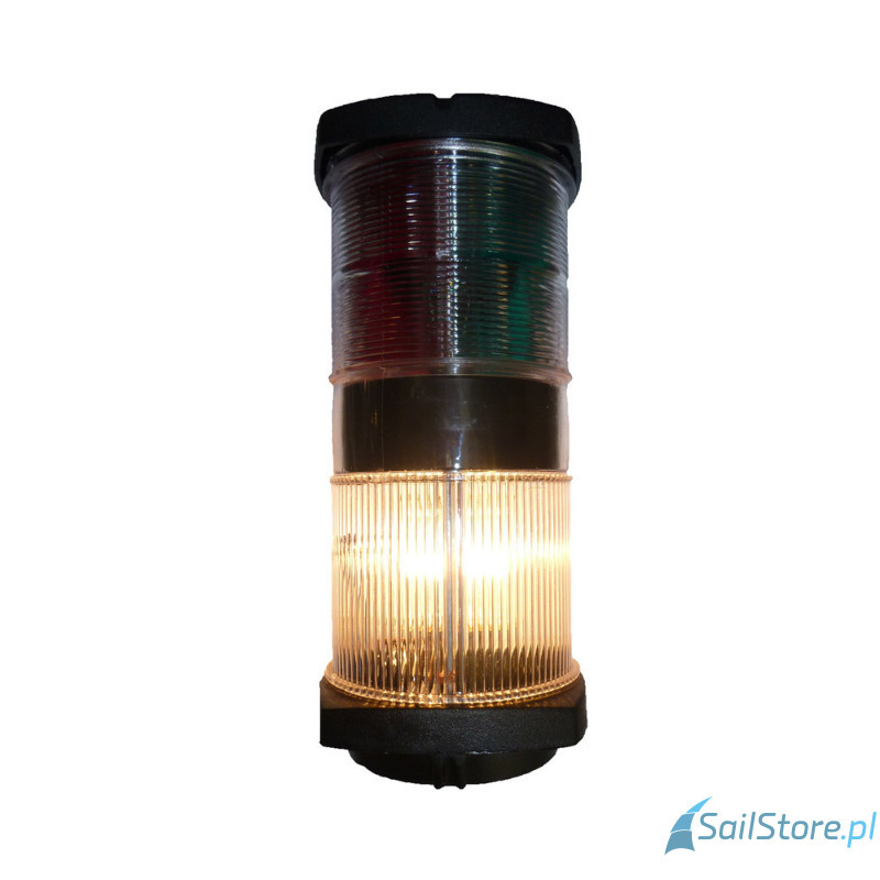 Trójkolorowe światło stałe nawigacyjne z lampą kotwiczną. Emituje światło lewą (czerwoną) i prawą burtę (zieloną) każde pod kątem 112,5° z białymi (rufowymi) światłami 135° oraz kotwiczne białe 360°. Intensywność oświetlenia >5,4cd z diod LED jest widoczna z odległości minimum 2 mil morskich. Elementy optyczne wykonane ze szkła akrylowego.