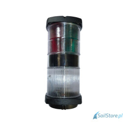 Klasyczna lampa nawigacyjna trójsektorowa z zespoloną lampą kotwiczną w obudowie z czarnego tworzywa. Elementy optyczne wykonane ze szkła akrylowego. Dla jednostek do 20 m długości.