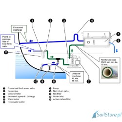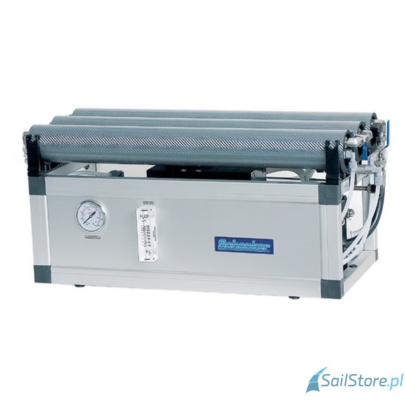 Odsalarka Schenker Modular 60 to idealne rozwiązanie dla żeglarzy i właścicieli łodzi motorowych, którzy poszukują niezawodnego sposobu na uzyskanie czystej wody pitnej na morzu. Zaprojektowana z myślą o załogach liczących od 4 do 6 osób, odsalarka Modular 60 doskonale sprawdza się na jachtach żaglowych o długości 35-45 stóp oraz na łodziach motorowych lub katamaranach o długości 30-40 stóp. Dzięki wydajności 60 litrów na godzinę i niskiemu zużyciu energii (tylko 240 watów), zapewnia stałe dostawy świeżej wody, niezależnie od warunków pogodowych. Odsalarka Modular 60 działa przy zasilaniu 12/24 V DC lub 230 V AC, co czyni ją idealnym rozwiązaniem dla łodzi z systemem elektrycznym na pokładzie. Bardzo kompaktowe urządzenia oparte na membranach podzielonych.