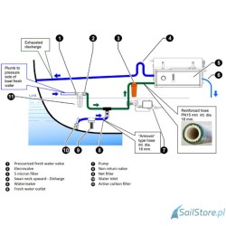 Odsalarka Schenker Modular 150 to idealne rozwiązanie dla żeglarzy i właścicieli łodzi motorowych, którzy poszukują niezawodnego sposobu na uzyskanie czystej wody pitnej na morzu. Zaprojektowana z myślą o załogach liczących od 8 do 10 osób, odsalarka Modular 150 doskonale sprawdza się na jachtach żaglowych o długości 50-60 stóp oraz na łodziach motorowych lub katamaranach o długości 40-50 stóp. Dzięki wydajności 150 litrów na godzinę i niskiemu zużyciu energii (tylko 600 watów), zapewnia stałe dostawy świeżej wody, niezależnie od warunków pogodowych. Odsalarka Modular 150 działa przy zasilaniu 24/48 V DC lub 230 V AC, co czyni ją idealnym rozwiązaniem dla łodzi z systemem elektrycznym na pokładzie. Bardzo kompaktowe urządzenia oparte na membranach podzielonych.