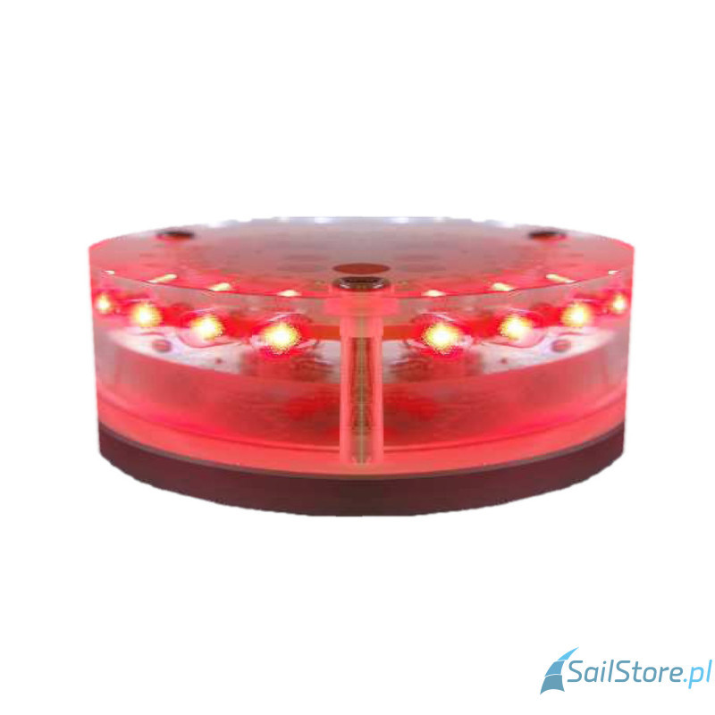 Jednokolorowe światło nawigacyjne emituje światło czerwone pod kątem 112,5°. Intensywność oświetlenia >5,4cd z diod LED jest widoczna z odległości minimum 2 mil morskich. Cała elektronika została w 100% zalana żywicą epoksydową, co zapewnia pełną ochronę przed wodą, solą, uderzeniami oraz wibracjami.