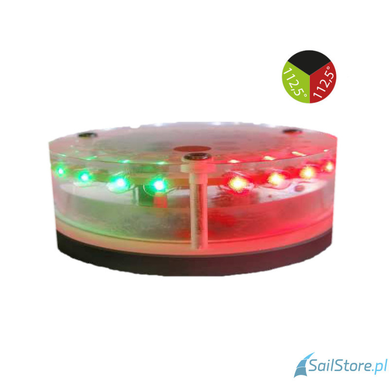 Dwukolorowe światło nawigacyjne emituje światło zielone (prawa burta) i czerwone (lewa burta) każde pod kątem 112,5°. Intensywność oświetlenia >5,4cd z diod LED jest widoczna z odległości minimum 2 mil morskich. Cała elektronika została w 100% zalana żywicą epoksydową, co zapewnia pełną ochronę przed wodą, solą, uderzeniami oraz wibracjami.