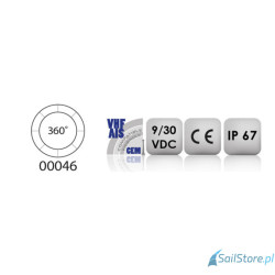 Błyskowa lampa nawigacyjne topowa biała 360 stopni, z obudową z czarnego tworzywa. Intensywność oświetlenia >5,4cd z diod LED jest widoczna z odległości minimum 2 mili morskich. Cała elektronika została w 100% zalana żywicą epoksydową, co zapewnia pełną ochronę przed wodą, solą, uderzeniami oraz wibracjami.