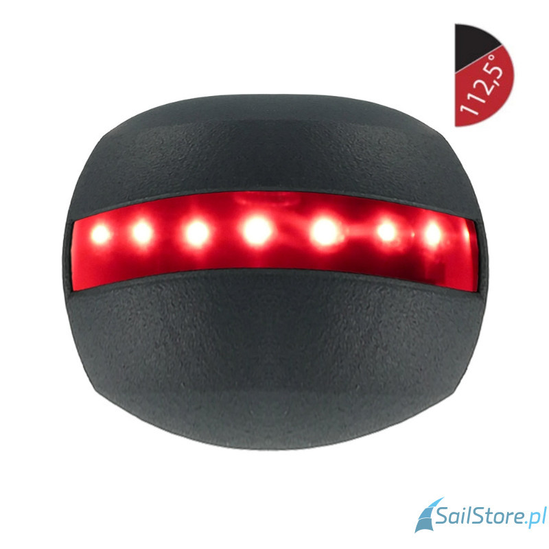 Czerwona lampa nawigacyjna bakburty (lewej strony) z obudową z żywicy epoksydowej odporną na wstrząsy.