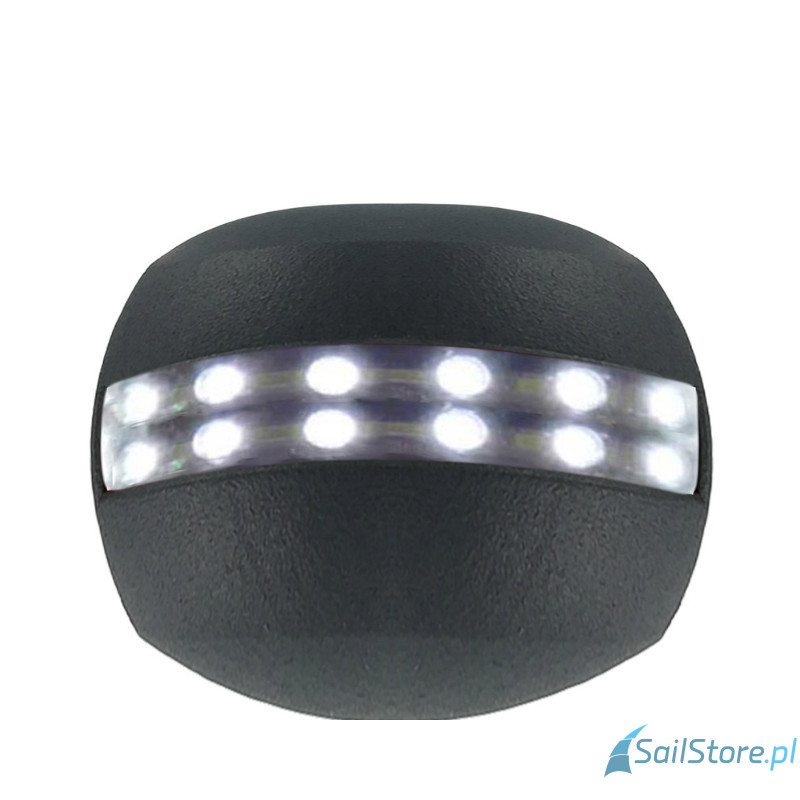 Biała lampa nawigacyjna rufowa (stern) z obudową z żywicy epoksydowej odporną na wstrząsy dla jednostek o długości do 20 m (65 ft).