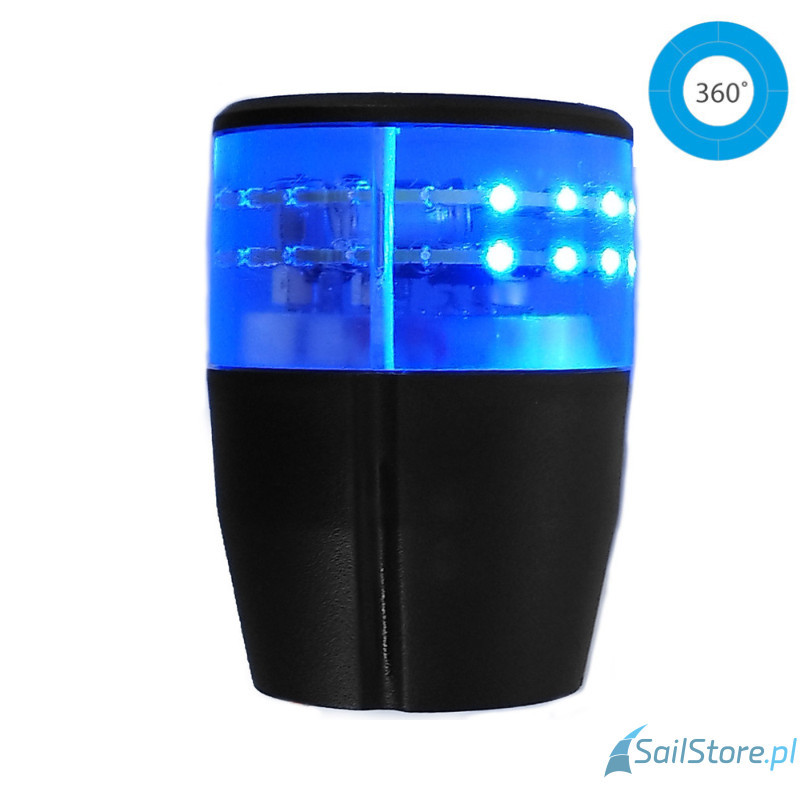 Błyskowa lampa nawigacyjna topowa niebieska 360 stopni, z obudową z czarnego tworzywa. Dla jednostek o długości do 20 m (65 ft). Stosowana jest jako sygnalizator ostrzegawczy na jednostkach pływających lub pojazdach służbowych ratowniczych i policyjnych.