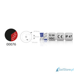 Jednokolorowe światło nawigacyjne emituje światło czerwone pod kątem 112,5°. Intensywność oświetlenia >15cd z diod LED jest widoczna z odległości minimum 3 mil morskich. Cała elektronika została w 100% zalana żywicą epoksydową, co zapewnia pełną ochronę przed wodą, solą, uderzeniami oraz wibracjami.