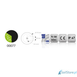 Jednokolorowe światło nawigacyjne emituje światło zielone pod kątem 112,5°. Intensywność oświetlenia >15 cd z diod LED jest widoczna z odległości minimum 3 mil morskich. Cała elektronika została w 100% zalana żywicą epoksydową, co zapewnia pełną ochronę przed wodą, solą, uderzeniami oraz wibracjami.