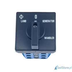 Przełącznik 1-0-2-3 umożliwia wybór źródła zasilania: Ląd – Generator – Przetwornica. Zaprojektowany tak, aby ograniczyć możliwość pracy ładowarki podczas działania przetwornicy, co zwiększa bezpieczeństwo i chroni system zasilania.