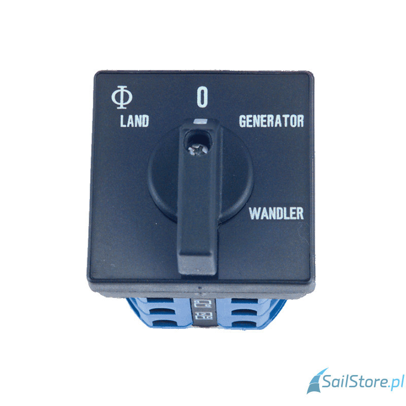 Przełącznik krzywkowy (Ląd / Generator / Przetwornica) przeznaczony do montażu na płytach czołowych o maksymalnej grubości 5 mm.
