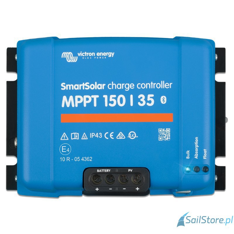 Regulator ładowania 150V 35A. Napięcie 12/24/48V wybierane automatycznie. Interfejs BlueTooth umożliwia programowanie i monitorowanie za pomocą smartfonu.
