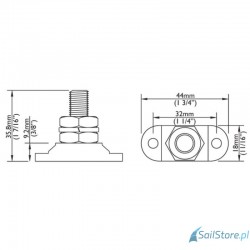 Zacisk dystrybucyjny 6 mm pol. ujemna. Wymiary podstawy: 44 x 35,8 mm.