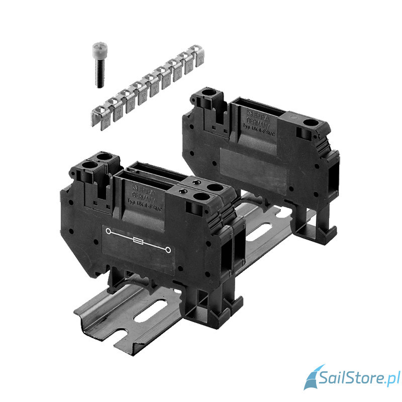 Zacisk bezpiecznikowy z możliwością mostkowania po stronie wejściowej, maks. 34 A.