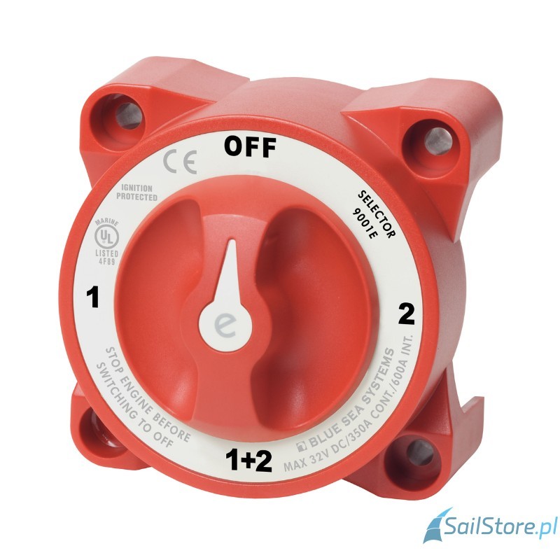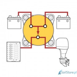 BWS 350 - Główny wyłącznik bateryjny do uniwersalnej instalacji, natynkowej lub panelowej. Przełącznik wyboru do łodzi motorowych z 2 akumulatorami rozruchowymi.