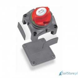 Zdejmowane płyty boczne ze wszystkich 4 stron dające możliwość podłączenia przewodów o przekroju do 50mm2 plus pokrywa tylna izolująca zaciski tylne i zabezpieczające je przed przebiciem/zwarciem. To sprawia, że przełącznik spełnia wymagania ABYC. Może być instalowany albo na powierzchni płaskiej, albo wpuszczony poprzez wycięcie otworu o średnicy 52 mm (2,1 cala).
