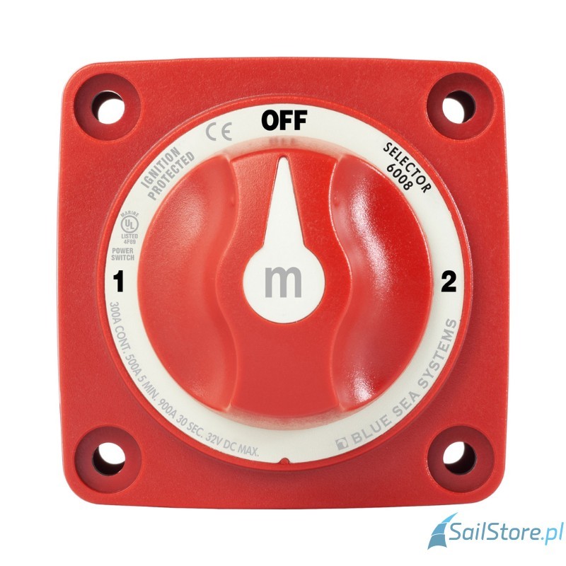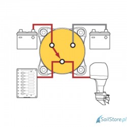 BWS 303 - Główny wyłącznik bateryjny do uniwersalnej instalacji, montażu natynkowego lub panelowego. Przełącznik wyboru do łodzi motorowych z 2 akumulatorami rozruchowymi.