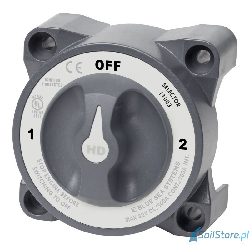 BWD 503 - Główny wyłącznik bateryjny do uniwersalnej instalacji, montażu natynkowego lub panelowego. Przełącznik wyboru do łodzi motorowych z 2 akumulatorami rozruchowymi.