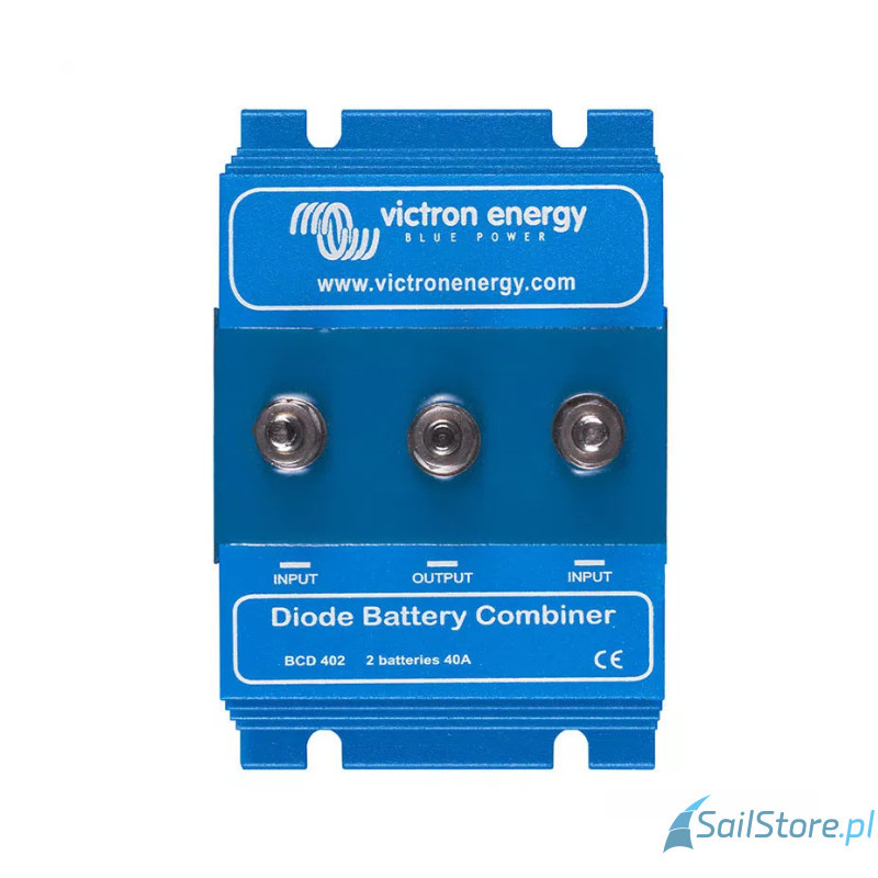 Diodowe przełączniki baterii Victron Energy zapewniają stałe zasilani DC kluczowym urządzeniom, takim jak np. system elektronicznej kontroli silnika. Dzięki ich podłączeniu można jednocześnie stosować dwa źródła zasilania, a awaria jednego z nich nie przerywa działania podłączonych urządzeń. Diodowe przełączniki baterii Argo charakteryzują się niskim spadkiem napięcia dzięki użyciu diody Schottky’ego: przy niskim natężeniu prądu spadek napięcia wynosi około 0,3 V, a przy mocy nominalnej ok. 0,45 V.